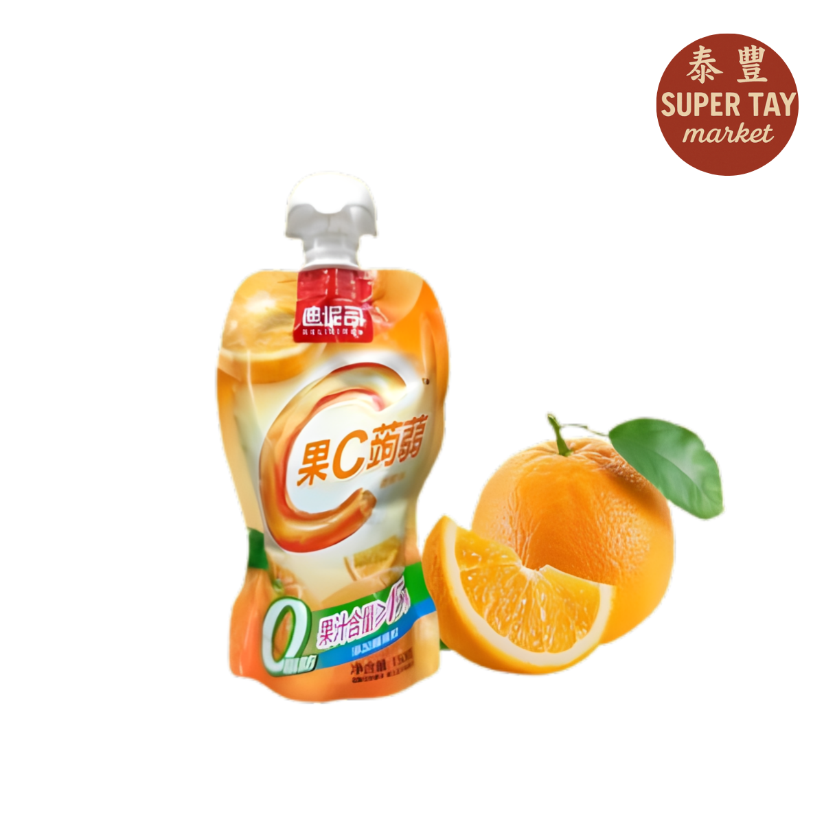 Bebida gelificada con zumo de manzana y konjac, sabor a naranja. Refrescante y fácil de consumir. Presentación de 150G. Marca Delicious.