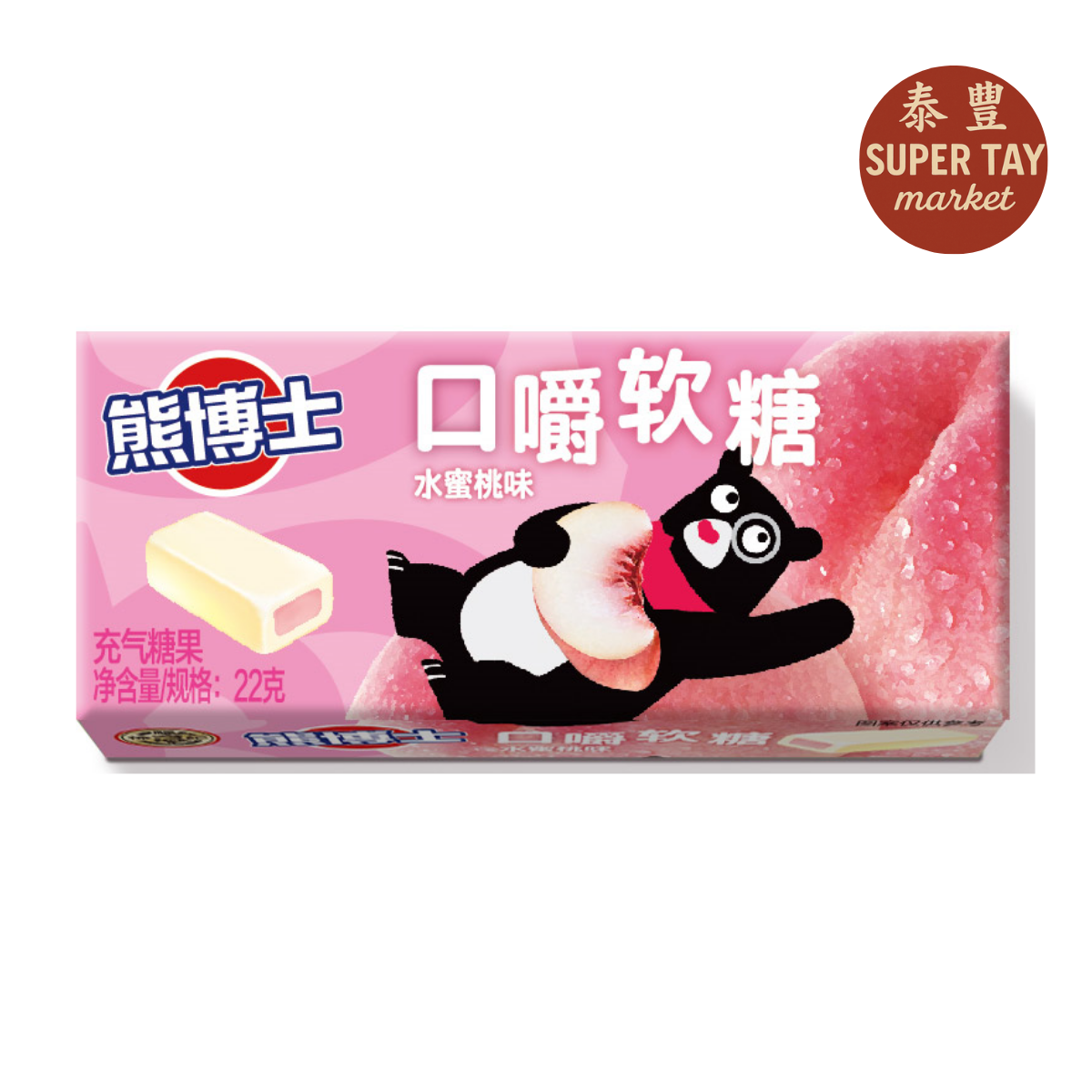 Caramelo masticable sabor a durazno Xu Fu Ji 22GR. Suave, dulce y frutal. Ideal para disfrutar en cualquier momento. Práctico y delicioso.
