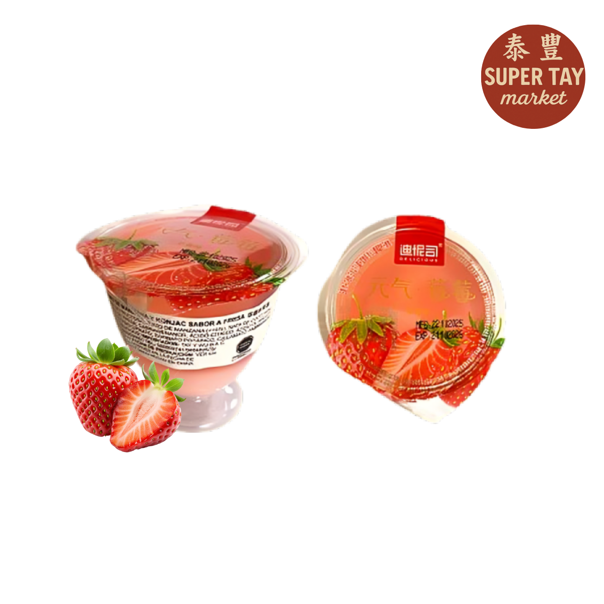 Jalea bebible de frutas con konjac sabor a fresa, refrescante y suave, en práctica presentación de 125 g, lista para disfrutar fría. Marca Delicious.